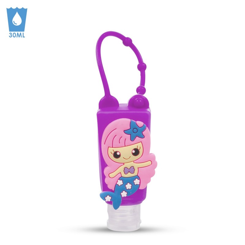 Llavero Botella higienizante de manos alcohol rellenable 30ml. Diseño sirena.