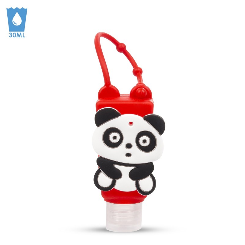 Llavero Botella higienizante de manos alcohol rellenable 30ml. Diseño panda.