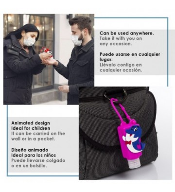 Llavero Botella higienizante de manos alcohol rellenable 30ml. Diseño tiburón.