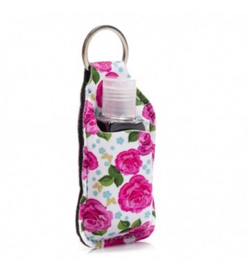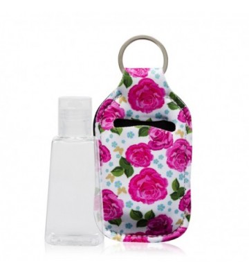 Llavero botella higienizante de manos alcohol rellenable 30ml tejido diseño flores.