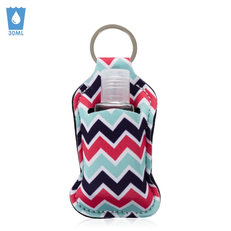 Llavero botella higienizante de manos. • Botella porta alcohol o hidrogel, rellenable, con 30ml de capacidad. • Funda de tela con diseño personalizado. Podrás cubrir completamente la botella para cuando no lo uses periódicamente. • Tapón de apertura rápida, anti goteo, desenroscable para rellenar. • Anilla llavero para llevar junto con tus llaves o colgar de tu bolso, mochila, etc. Poliéster y PVC.