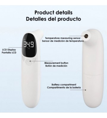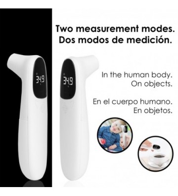 Termómetro infrarrojo sin contacto. Modo temperatura corporal y de objetos.