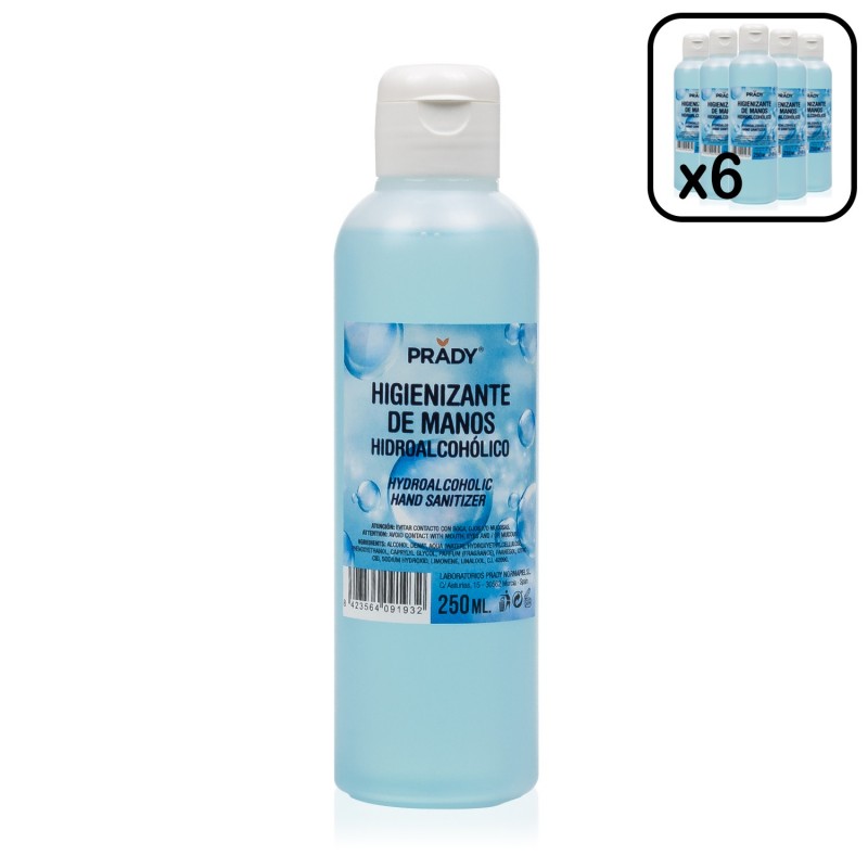 Gel hidroalohólico 250 ml con contración del 70% de alcohol isopropílico. Pack de 6 uds.