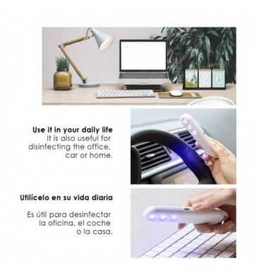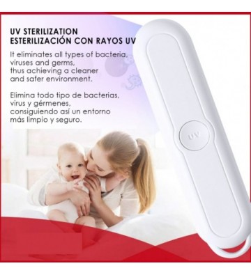 Fácil de usar, basta con acercar la lámpara esterilizadora al objeto durante unos segundos, a una distancia de entre 1 y 2 cm.