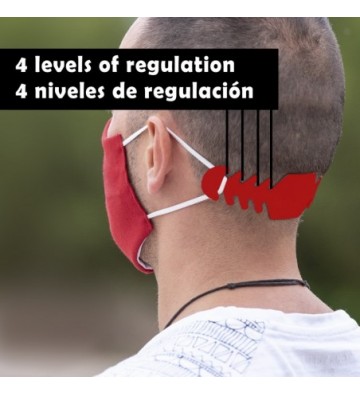 Ajustador para mascarilla en resistente material PP. Fácil de desinfectar después de cada uso. 4 posiciones de ajuste. PP