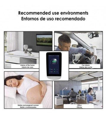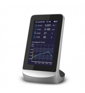 • Detector multifuncional de calidad del aire con funciones de reloj y de registro.