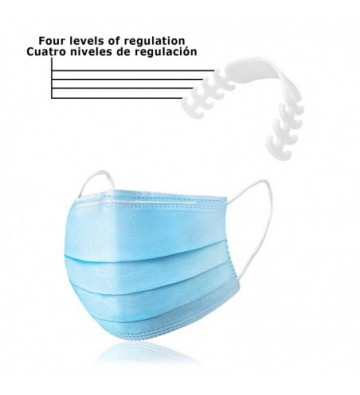 Salva orejas para mascarillas. • Reduce el dolor y la presión de usar mascarillas por mucho tiempo. • Flexible y ligero. • Máxima comodidad, ajustable. • Fácil de limpiar, reutilización ilimitada. • 4 Posiciones de uso. • Pack de 5 unidades. Silicona