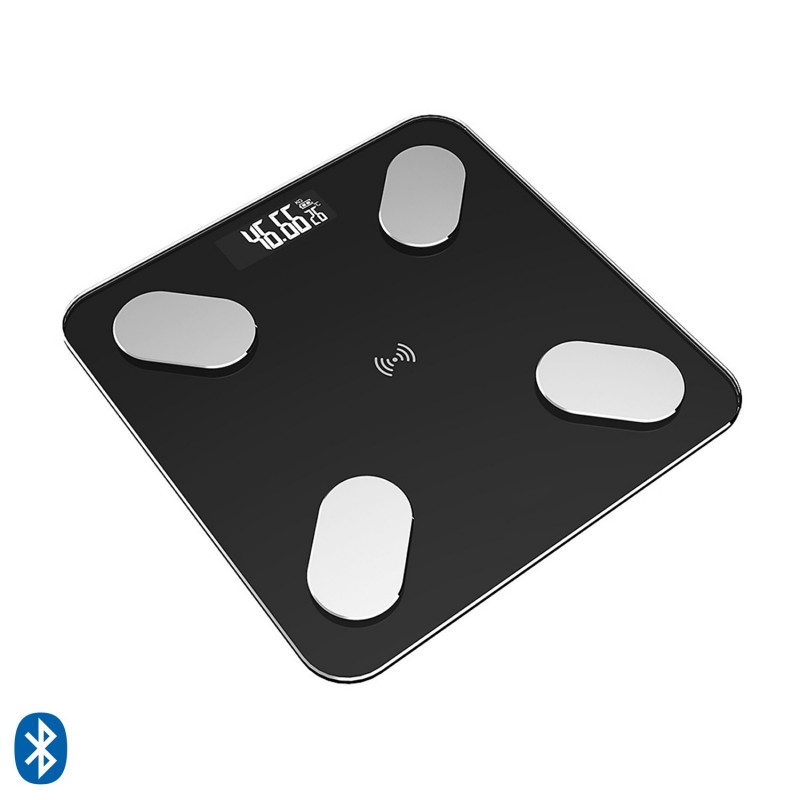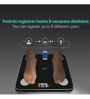 Báscula bluetooth con aplicación de control de peso para smartphone.