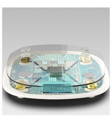Báscula bluetooth con aplicación de control de peso para smartphone. • Sensor de alta precision. • Bluetooth 4.0 de bajo consumo. • Indicador de temperatura ambiente al encender. • Calculo de IMC - índice de masa corporal. • Cristal templado de alta resistencia. • Display LED. Bluetooth: 4.0 Alimentación: batería integrada recargable. Incluye cable de carga UBS - micro USB. Máxima capacidad: 180 kg Mínima capacidad: 3 kg Precisión: 100 gr. Unidades: Kg, lbs, st Humedad relativa: <90% Compatibilidad: iOS 7.0 y Android 4.3 y superiores. PVC Aleación_de_Metal