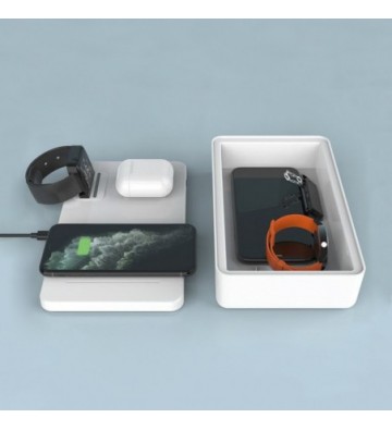 5 en 1: Cargador múltiple Qi con caja esterilizadora UV y aromaterapia