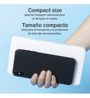 Portamascarillas en resistente material PP de acabado sólido en tono mate. De tamaño compacto, ideal para el transporte y la protección de todo tipo de mascarillas y para la creación de sets con diversos productos higiénicos. Fácil de desinfectar después de cada uso y disponible en colores blanco y negro. PP