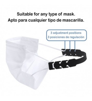 Confortable ajustador flexible para mascarilla, enresistente y suave silicona. Fácil de desinfectar después de cada uso, con 3 posiciones de ajuste Silicona