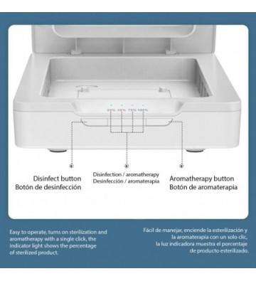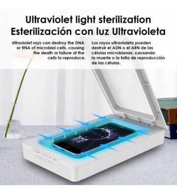 • Este producto no solo es adecuado para la mayoría de los teléfonos inteligentes, sino también para la desinfección de máscaras, relojes, joyas, gafas, llaves, chupetes, platos, ropa interior y otros objetos pequeños.