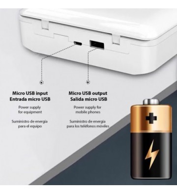 • Dispone de salida de USB para carga de dispositivos móviles durante el proceso de desinfección.