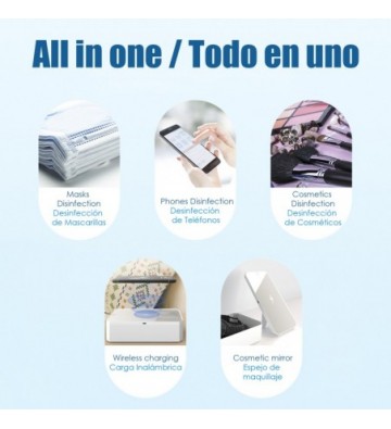 • Este producto no solo es adecuado para la mayoría de los teléfonos inteligentes, sino también para la desinfección de máscaras, relojes, joyas, gafas, llaves, chupetes, platos, ropa interior y otros objetos pequeños.