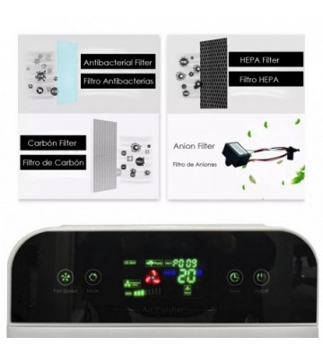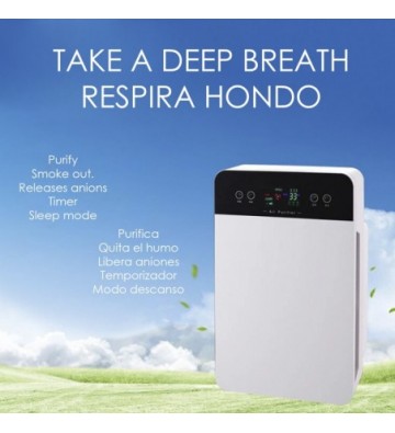 Purificador de aire con filtro de carbón activo catalizador frio e ionizador.