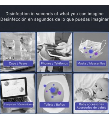 Desinfectante/Esterilizador UVC ultravioleta para Smartphone para TYPE C. Mediante la tecnología de luz ultravioleta esteriliza y desinfecta cualquier superficie. Diseño ligero y compacto para usarlo en cualquier lugar y momento. Desinfección del 99,99% de la superficie. Conexión USB Type C Output: 6V Input: DC 3,7V PVC Aleación_de_Metal