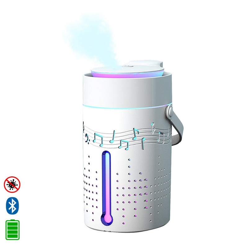 Nebulizador esterilizador multifunción. • Admite hidro alcohol, con un depósito de 1000 ml. • Compatible con puertos USB. Podrás utilizarlo conectado a través de un cargador USB / portátil / banco de energía (powerbank) / cargador de coche y otros dispositivos habilitados para USB. • De bajo consumo y muy silencioso, fácil de limpiar y mantener. • Luz LED ambiental multicolor. • Asa extraíble. Material: ABS Capacidad del depósito: 1000ml Volumen: 50Ml/H Area de aplicación: 20-100 ㎡ Voltaje de entrada: 5V ABS Aleación_de_Metal