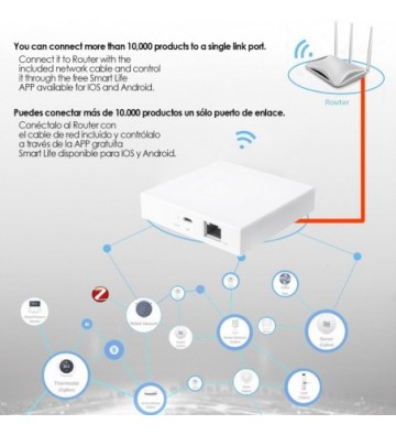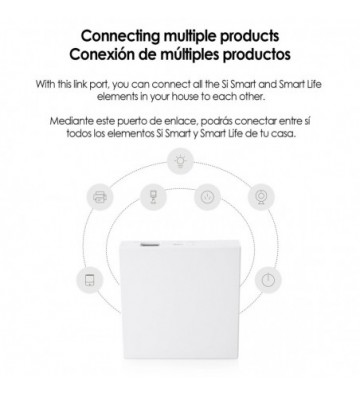 • El puerto de enlace Si Smart es la herramienta que permite la conexión y manejo de los todos los productos Si Smart y Smart Life que funcionan con tecnología ZigBee como sensores de puerta, sensores de movimiento, bombillas led entre otros muchos.