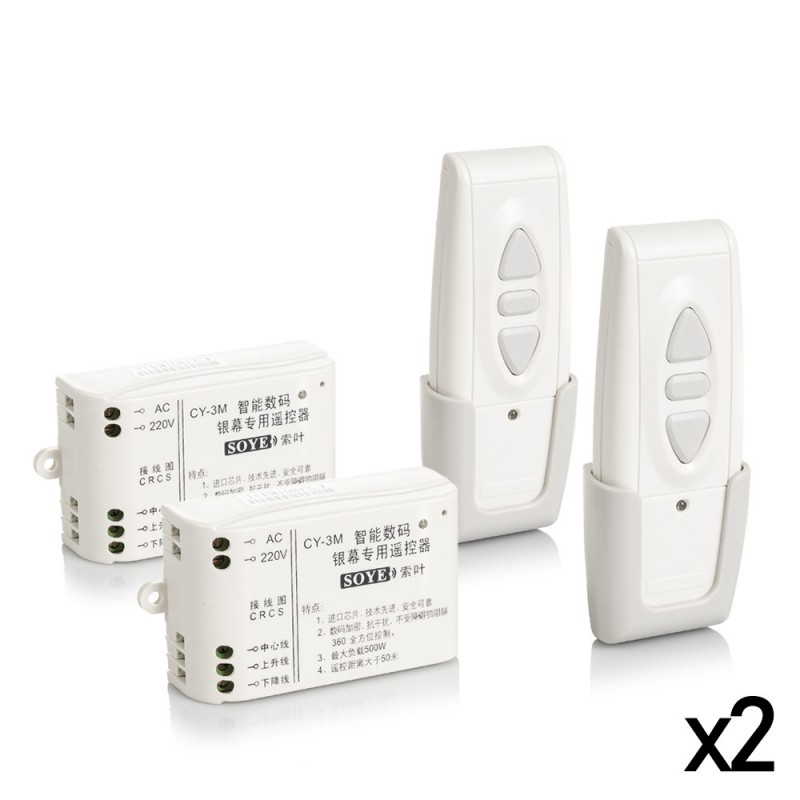 Control remoto universal para puertas de garaje, persianas, pantallas de proyectores, etc. • Gracias al mando podrás abrir o cerrar la puerta del garaje, subir y bajar las persianas, etc. desde una distancia de hasta 50 metros. • Doble frecuencia: 315MHz o 433MHz • Modo avance (subida), retroceso (bajada) y parada. • Protección contra sobretensión. • Incluye 2 mandos de control y 2 receptores. Frecuencia de funcionamiento: 315MHZ o 433MHZ Distancia máxima de control remoto: 50 metros (sin obstáculos) PVC Aleación_de_Metal